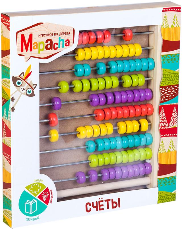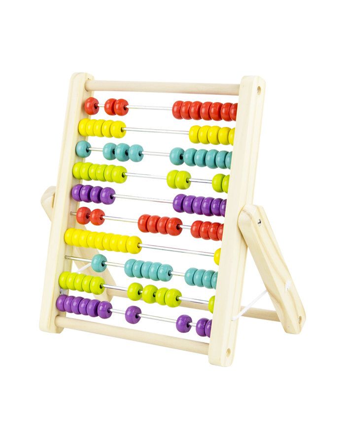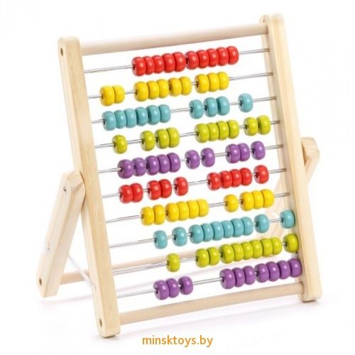 Большие счеты удобны в использовании. Они состоят из разноцветных косточек и раскладной опорной стойки. Счеты используют как учебно-методическое пособие. На спицах нанизано по 20 красных, желтых, зеленых, фиолетовых и голубых косточек. Каждый ряд представляет числовой разряд и имеет свой цвет. С их помощью выполнение сложения, вычитания, умножения и деления становится простым и интересным.