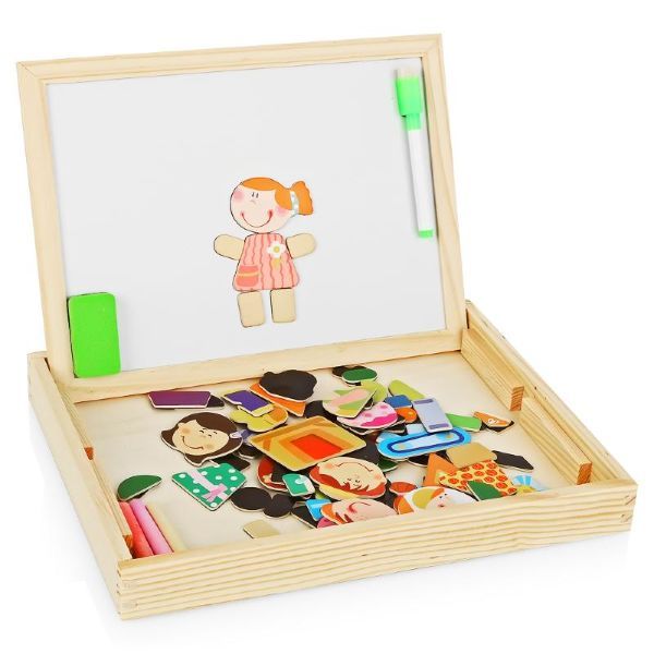 доска с лотком, маркер, мелки, губка, магнитные фигурки |