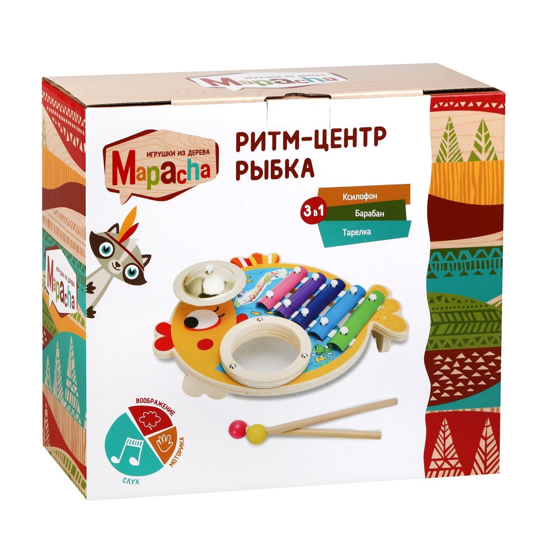 Музыкальный центр для детей - Рыбка 3в1: ксилофон, барабан, тарелка, Mapacha 76810