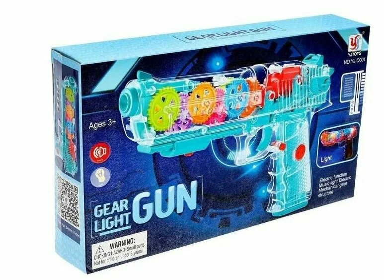 Пистолет игрушечный музыкальный, прозрачный, звук, свет, YJ-Q001