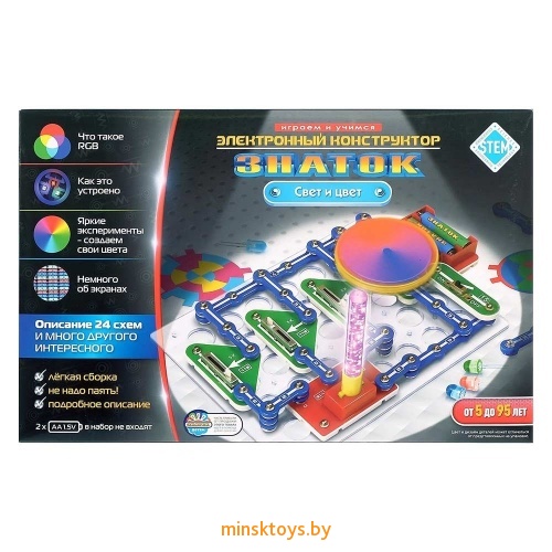 Этот интересный конструктор — увлекательный набор для изучения физики и, в частности, свойств цвета. Ребенок совершит ряд интересных опытов и узнает, как смешивать базовые цвета для получения разных оттенков. Благодаря этому набору, ребенок сможет лучше изучить моделирование и конструирование и получит функциональное изделие.