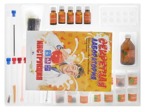 Набор для опытов и экспериментов «Секретная лаборатория» включает в себя различные реактивы, а также настоящее оборудование для работы с ними. Благодаря этому комплекту, ребенок сможет провести не один десяток интереснейших химических опытов, в ходе которых он узнает много нового об окружающем мире. Поскольку в набор включены не только безвредные вещества, играть с ним рекомендуется детям постарше — от 10 лет. Разумеется, при смешивании реактивов и экспериментировании не помешает помощь взрослых. С набором «Секретная лаборатория» ребенок сможет почувствовать себя в роли настоящего исследователя.