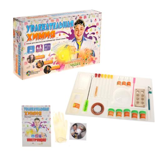 Набор для опытов и экспериментов «Увлекательная химия» предназначен для школьников, проявляющих интерес к миру науки. Благодаря данному комплекту, ребенок сможет оборудовать свою собственную лабораторию. В ней можно будет поставить множество интересных и познавательных опытов. Помимо реактивов и настоящего лабораторного оборудования, в набор входит мультимедийный диск. Следуя инструкции, юный химик сможет ставить эксперименты без опасности для здоровья.