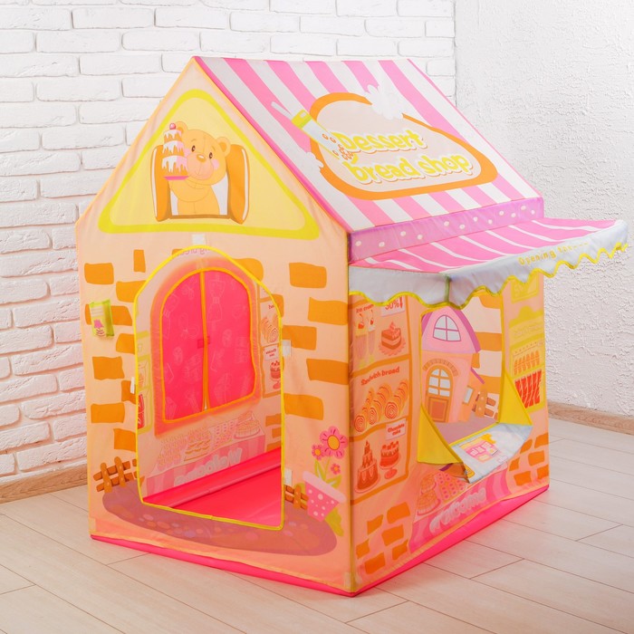 Игровая палатка "Французская кондитерская" великолепно подходит для детских сюжетно-ролевых игр. Дизайн изделия выполнен в стиле изысканного французского кафе. Две стороны палатки оснащены окошками. Рядом с дверцей расположен настоящий звонок.