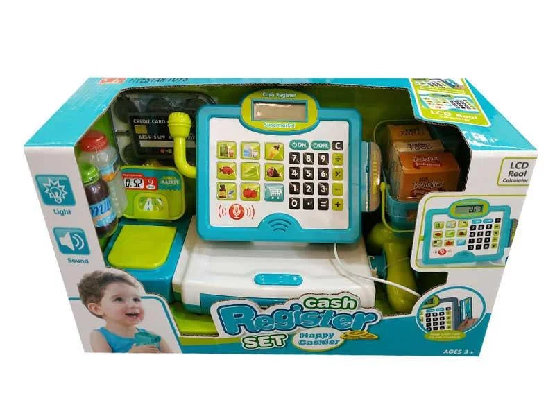 Игрушечный набор Кассовый аппарат — отличный подарок для ребенка. Малыш сможет выбрать продукты, взвесить их и заплатить на кассе, вперед к игре! Стеллаж оборудован звуковыми эффектами, необходимыми полками, весами и сканером. Сделано из качественного и красочного пластика голубого цвета. В комплекте: кассовый аппарат; корзина; игрушечные деньги и карточка; продукты. Игра с набором Shantou Jinxing развивает воображение, внимание, творческие способности, фантазию и мелкую моторику. Рекомендовано для детей от 3-х лет.