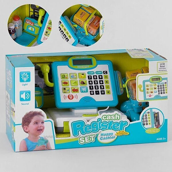 Кассовый аппарат является отличным обучающим игровым набором. Игрушечные деньги познакомят малыша с азами счета, а настоящий калькулятор будет помогать ему решать сложные примеры. В процессе игры ребенок будет изучать социальные роли и тренировать коммуникативные навыки. Кассовый аппарат оборудован: