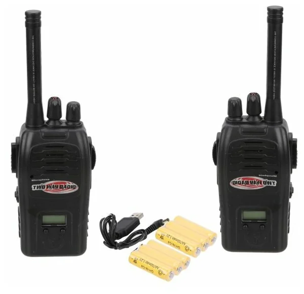 Несомненно, рация — атрибут полезный и интересный для игры, но может использоваться и для иных целей. Комплект рассчитан на 2-х человек, которые могут спокойно переговариваться друг с другом на расстоянии. Рации работают от аккумуляторов.
