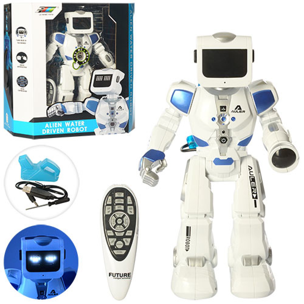 Современный робот на радиоуправлении K3 со звуковыми и световыми эффектами удивит Вашего юного любителя инновационных технологий функциональными возможностями. После наполнения заднего контейнера водой, зафиксированного на спине у космического друга происходит включение игрушки. Робот оснащен множеством интересных программ, позволяющим ему не только двигаться вперед-назад, поворачиваться, вертеть головой, петь и говорить, но и даже танцевать под музыку. Производительный аккумулятор Li-Ion с емкостью 600mAh обеспечит продолжительную, веселую игру. Интерактивный робот K3 New Auler – это уникальная игрушка, предназначенная для деток старше пяти лет, с которой ребенок будет развивать логическое мышление, координацию движений и фантазию. Игровой набор дополнен коробкой размером 42 х 15 х 39 см, а также пультом радиоуправления с радиусом действия до 10 метров, с которым легко справится даже новичок. Представленная модель поразит Вашего непоседу удивительной детализацией, маневренностью и футуристичным дизайном, добавляющим игре реалистичности.