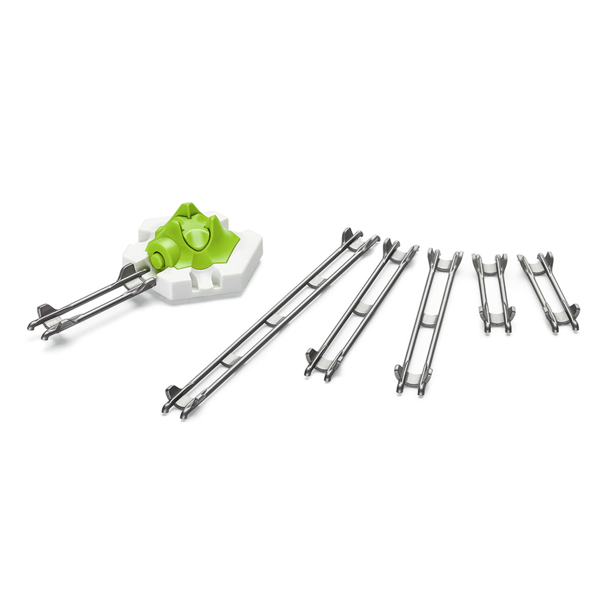 Набор «Рельсы и труба» — не самостоятельная игра. Его можно использовать только в сочетании со Стартовым наборомGraviTrax.