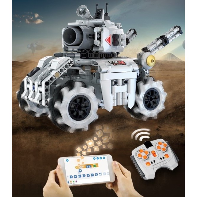 Конструктор Cada Программируемый Танк Шторм (501 деталей, пульт, электропривод) - C71012W - это радиоуправляемый конструктор Cada deTech Программируемый Танк Шторм с пультом управления 2.4GHz. В набор входят элементы для сборки радиоуправляемого танка и сам пульт. В приложении вы можете запрограммировать танк, задавая ему последовательность движений. Помимо деталей корпуса и колес, в комплект входят 2 электродвигателя и приемник, батарейный отсек.
