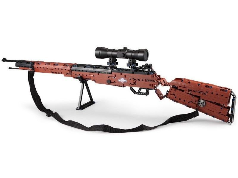 Немецкая винтовка Mauser примечательна тем, что её оригинал был особенным видом стрелкового оружия по всем характеристикам. В первую очередь, своей многолетней историей. Она почти на протяжении 100 лет была на вооружении многих европейских войск, начиная Прусской армией, в которой начала применяться ещё в конце XIX века. Сейчас легендарная винтовка превратилась в настоящий антиквариат, за которым идёт охота. Потому появление в продаже копии этой уникальной винтовки вызывает немалый интерес у коллекционеров образцов боевого стрелкового оружия. Данная сборная игрушка по своим размерам, а её длина около одного метра, сильно напоминает оригинальную версию. В полном восторге от таких параметров будут все мальчишки! Винтовки Mauser выпускались в самых разных модификациях. Модель, которую предстоит собрать из деталей набора C61010 CaDA Снайперская винтовка Mauser 98k, особого назначения – это видно по картинке на «обложке» фирменной коробки. Это снайперский тип. Такое оружие широко использовалось немецкими солдатами в годы Второй мировой войны. Что примечательного в сборном прототипе?