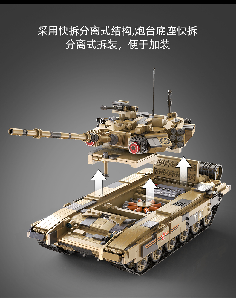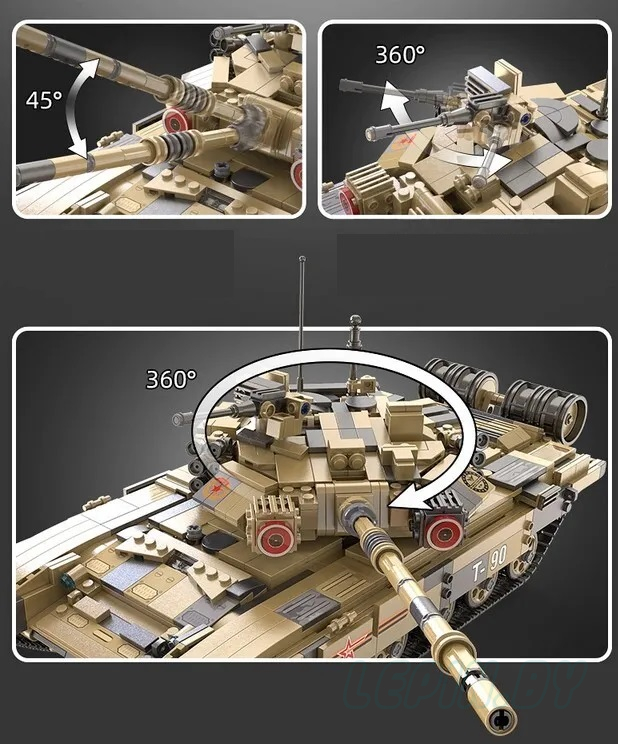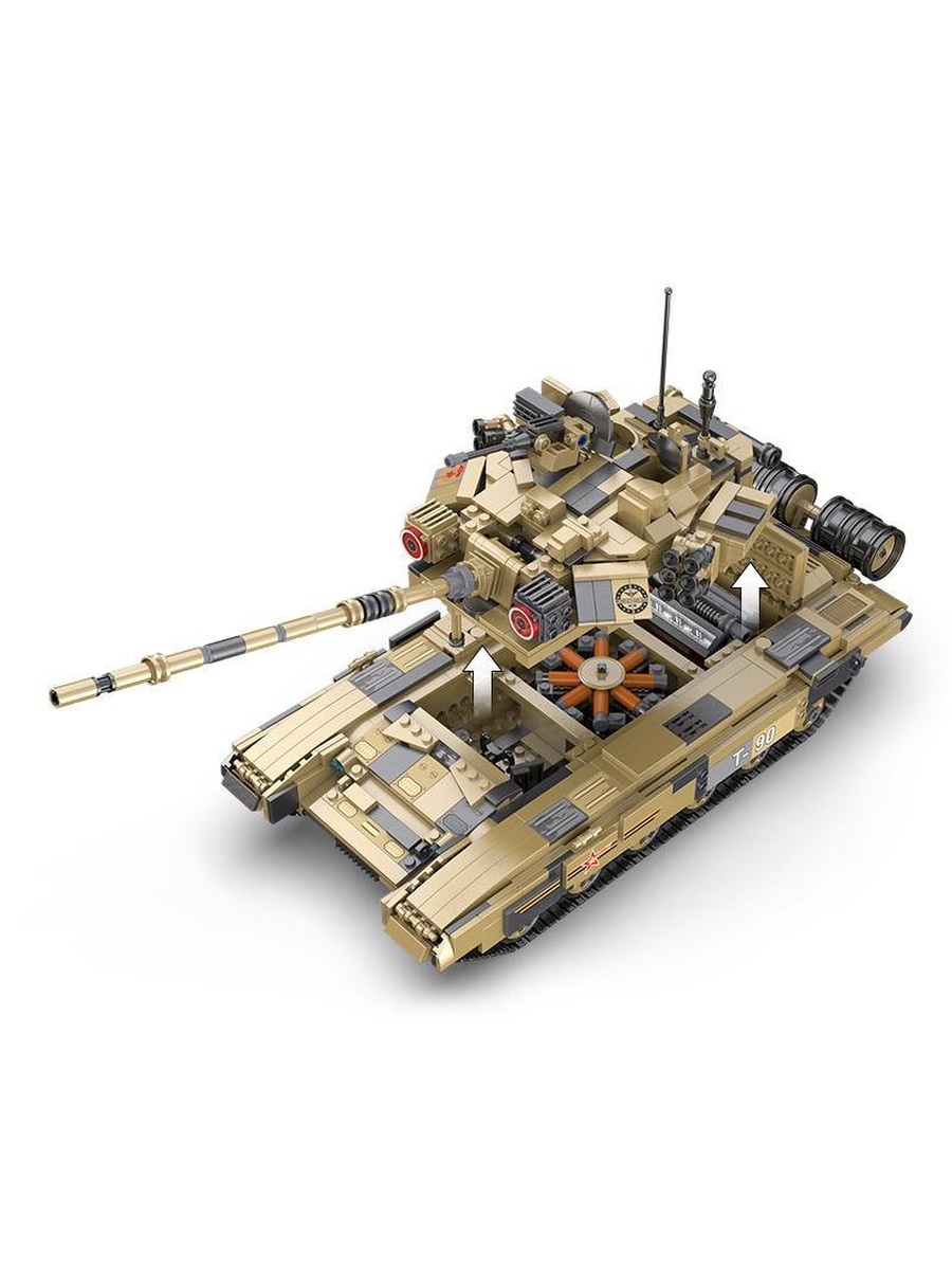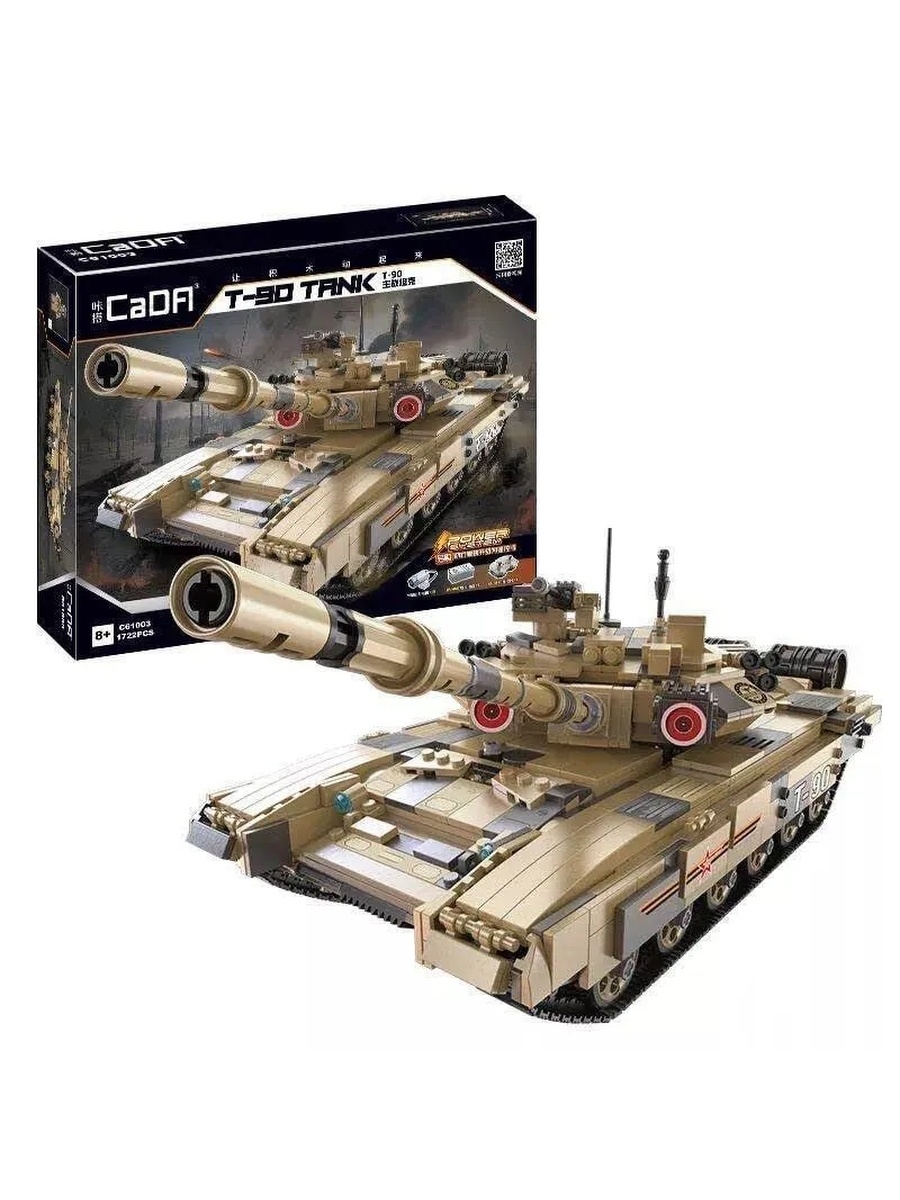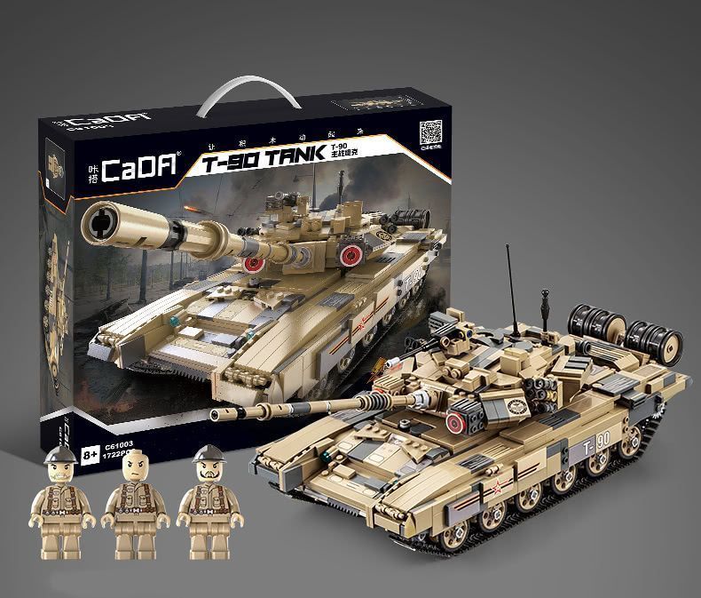 Модель танка, состоящая из 1722 деталей, безусловно понравится мальчишкам. Игрушка повторяет вид и основные конструктивные особенности танка Т90. При использовании комплекта электроники (приобретается отдельно) для конструкторов CADA, танк может дистанционно управляться: движение в разных направлениях, пушка вращается при нажатии кнопки на пульте, ствол поднимается и опускается. Игрушечная модель танка выглядит внушительно и надёжно. На таком танке не страшно отправиться в разведку или вступить в боевое сражение с лучшим другом!
