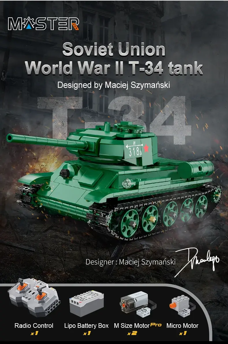 Конструктор на радиоуправлении - Советский танк Т34, CaDA Technic C61072W
