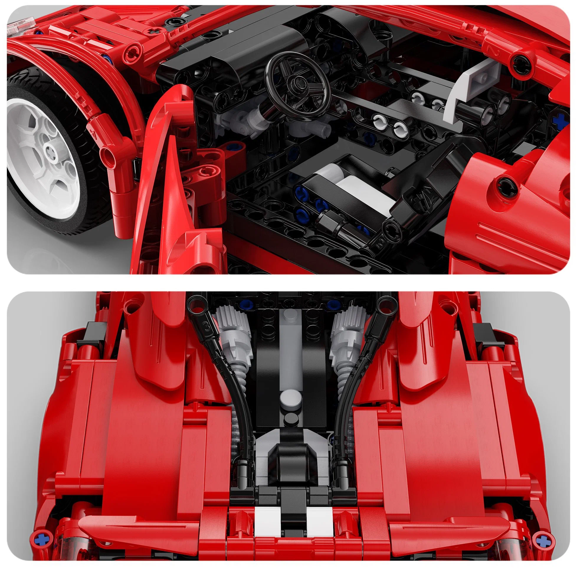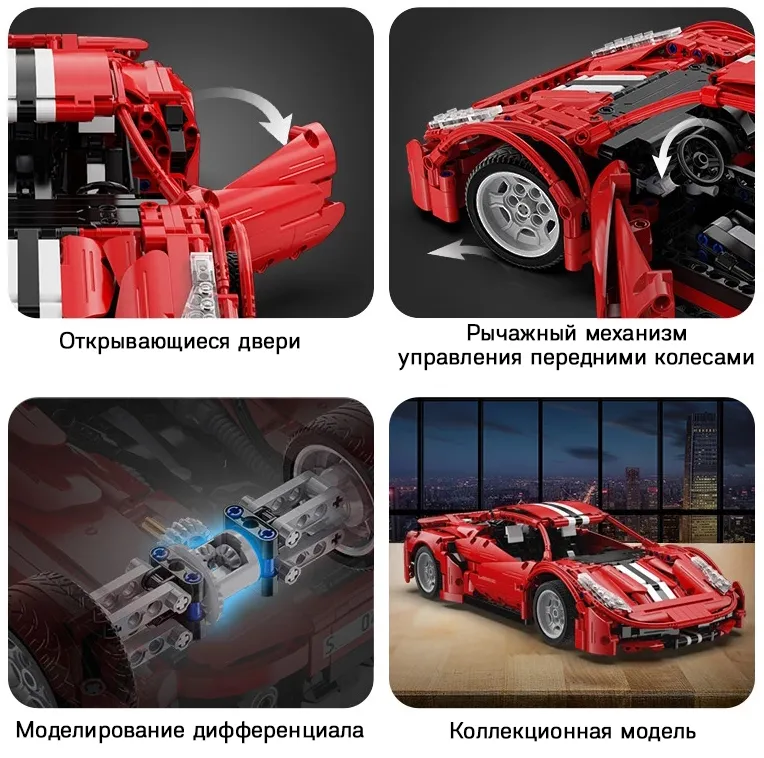 Феррари спортивная машина Ferrari Red Devils конструктор Cada Technic C61049 Модель итальянского спорткара в красном цвете очень реалистична. Широкие колеса с низкопрофильной мягкой резиной и серыми дисками, легко узнаваемая обтекаемая форма кузова, открывающиеся двери и агрессивный спортивный дизайн элементов корпуса. Рулевое колесо управляет поворотом передней оси. Автомобиль может быть моторизован (набор электрики в комплект не входит).