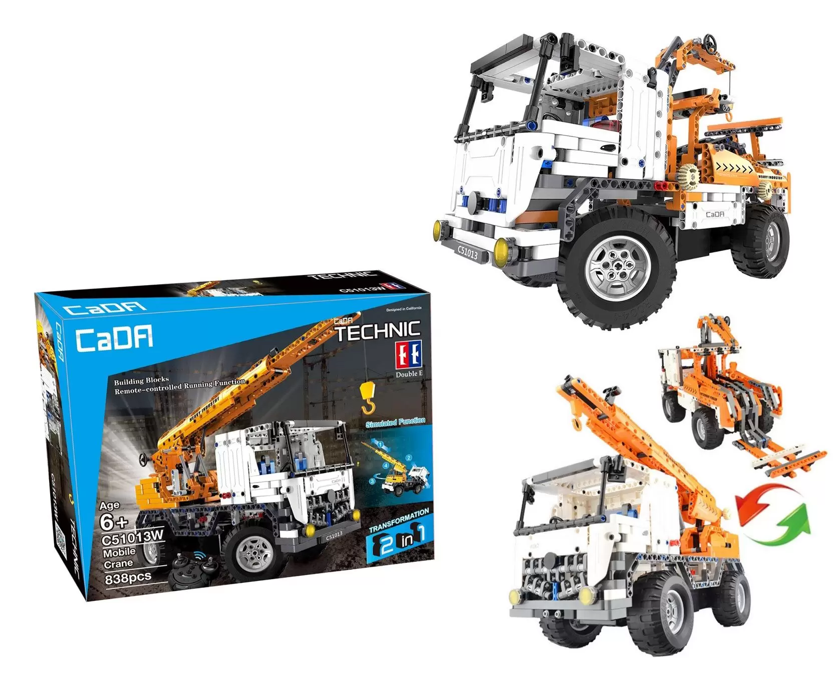 Детский конструктор CaDa Technic С51013W представляет собой набор для постройки подъемного крана на радиоуправлении и содержит 838 деталей! Помимо деталей корпуса, в комплект входят колеса с покрышками из мягкой резины, электродвигатель, плата управления, аккумулятор с зарядным устройством и пульт! Детали в наборе отлично подогнаны друг к другу, поэтому сборка не вызовет трудностей, а собранная машинка не развалится во время игры.