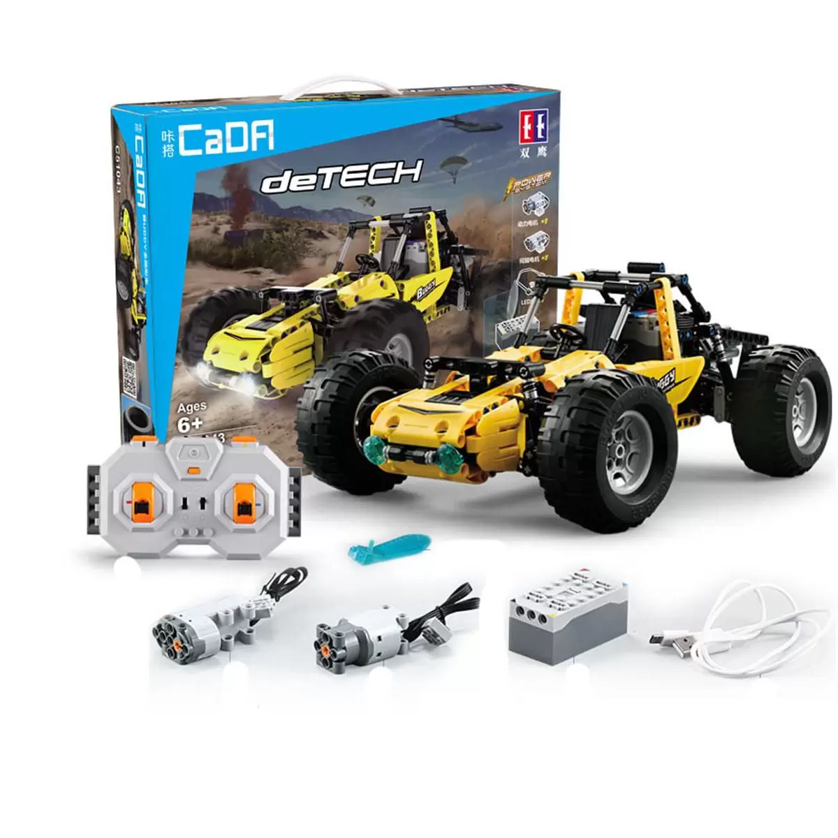 Конструктор - отличная развивающая игрушка, способная увлечь любого ребенка! Особенно если из набора в итоге получится красивый желтый багги, оснащенный электродвигателем и пультом управления. CaDa Technic - линейка конструкторов автомобилей и специальной техники, которые отличаются прекрасной собираемостью, прочностью и технологичностью готовой модели. Данный конструктор является аналогом Лего, не уступает по качеству и привлекает очень выгодной ценой.