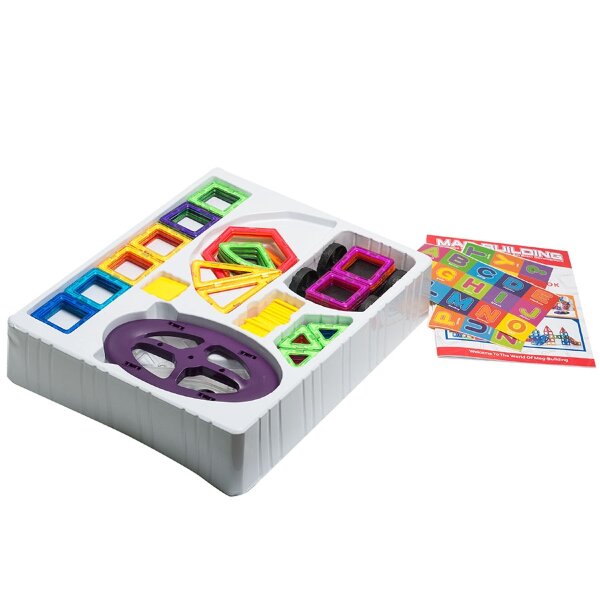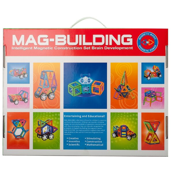 Магнитный конструктор Mag-Building 78 деталей принадлежит к игрушкам следующего поколения для маленьких любителей строить и конструировать с 3 до 10 лет. Детская фантазия легко выйдет за рамки инструкции, в которой описаны модели сборки домов, самолетов, деревьев, геометрических фигур – малыш непременно придумает и смастерит что-то свое. Детали удачно сочетаются с подходящими частями других конструкторов. Они изготовлены из экологически чистого гипоаллергенного пластика и совершенно безопасны для детского здоровья. Встроенные магниты крепко удерживают запчасти.