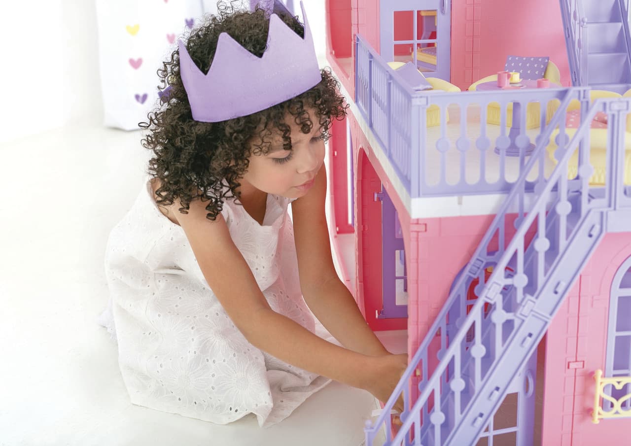 - Игрушка из серии «Маленькая принцесса» представляет собой кукольный домик с частично открытой игровой зоной.