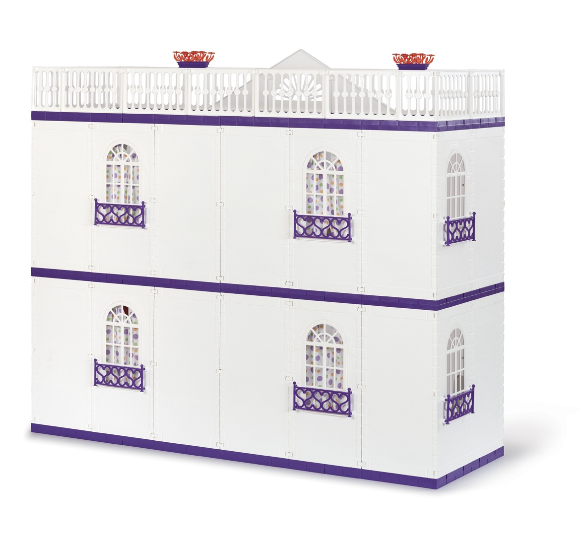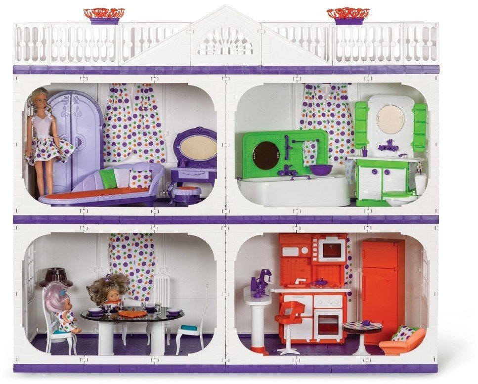- Кукольный домик и аксессуары выполнены из пластика повышенной прочности, который хорошо сохраняет форму, а окрашен в яркие цвета стойкими к выгоранию и истиранию красителями.