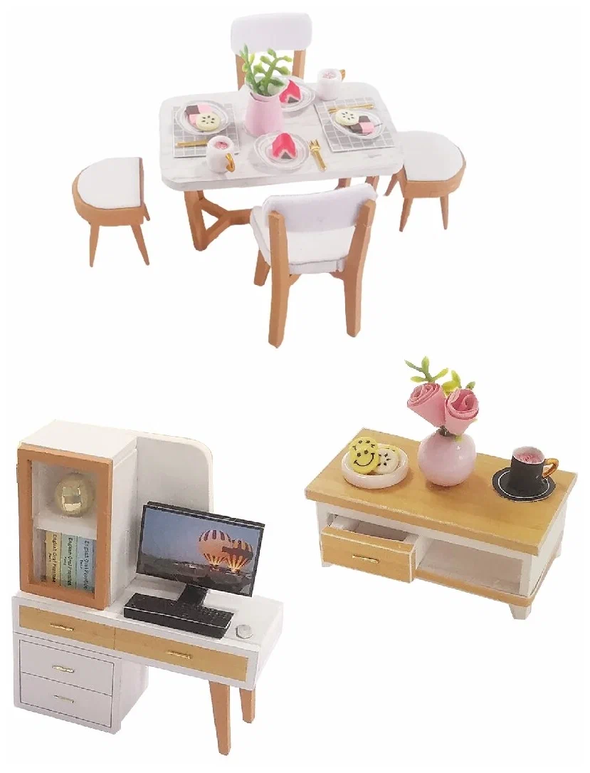 Работать над созданием удивительной интерьерной модели могут дети от 10 лет и взрослые. Это хобби увлекает всех членов семьи! Вам предстоит собрать каркас и сделать настоящую проводку со светодиодами, оформить стены, собрать мебель и даже такие мельчайшие детали, как ваза или стопка журналов.