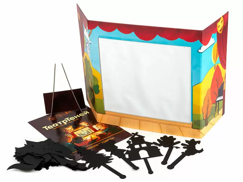 «Театр теней» – это уникальный развивающий игровой набор, с которым можно устроить необычное театральное представление у себя дома. С помощью набора можно сыграть спектакли по сказкам «Колобок», «Курочка Ряба», «Три поросёнка», «Репка» или придумать свою сказку.