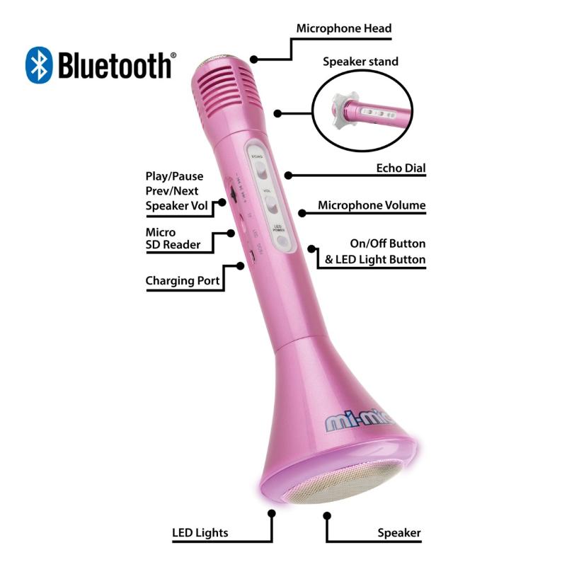 Микрофон с собственным динамиком работает без проводов. Для него не нужно специальных приспособлений: просто включите караоке-видео на смартфоне и наслаждайтесь вечеринкой. Интересный цвет корпуса сделает микрофон хорошим подарком для девочки