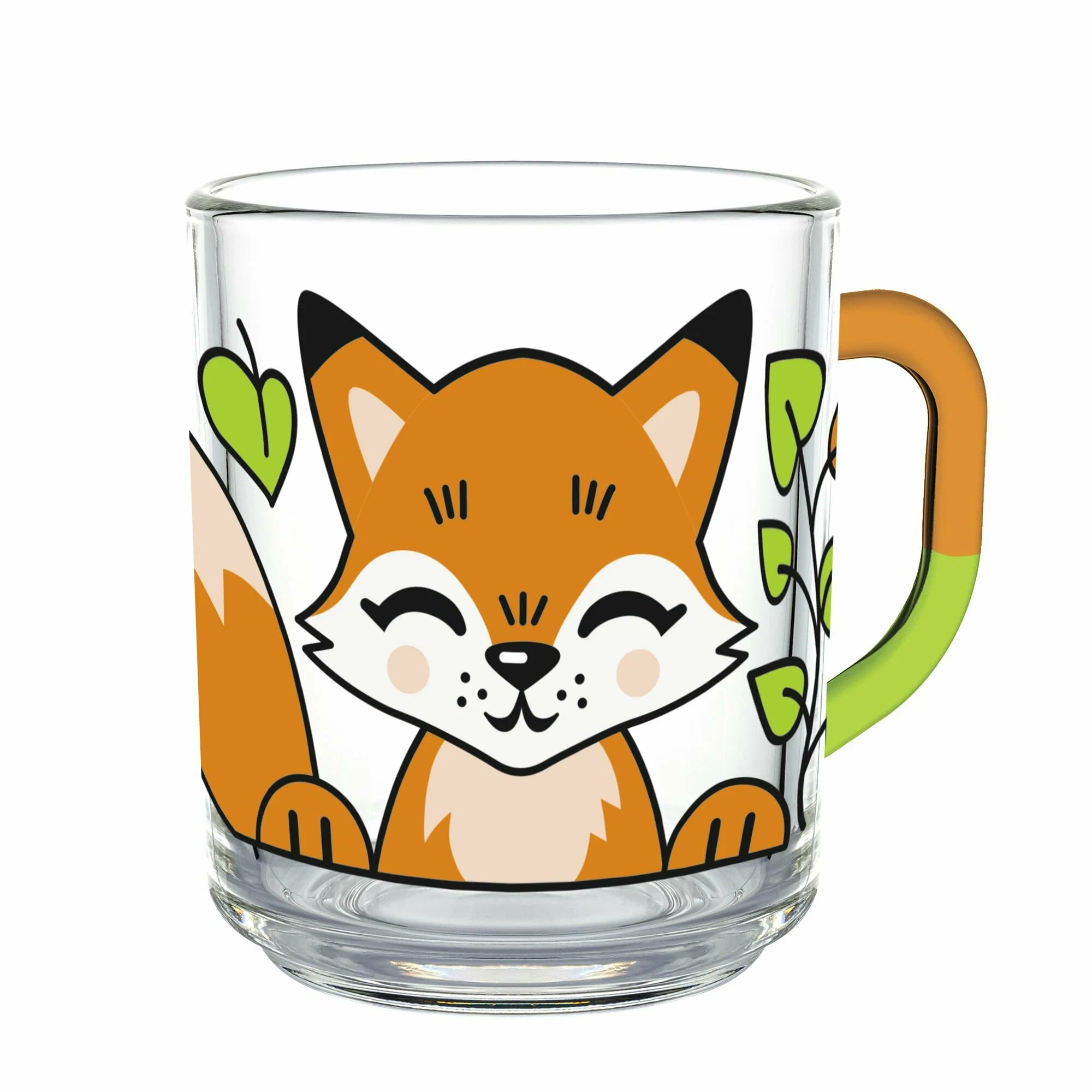 стеклянная кружка – 1 шт (высота 9 см, диаметр 7 см, 200 мл), акриловые краски – 3 шт (белая, оранжевая, зеленая), черный контур - 1 шт. |