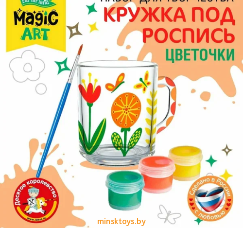 Откройте для себя удивительный мир креативности с Hand Made кружкой под роспись «Цветы» от российского производителя «Десятое королевство». Этот уникальный набор для творчества идеально подходит для детей и их родителей, обеспечивая увлекательное времяпрепровождение, которое отвлечет от гаджетов и поможет развить воображение, фантазию и художественные навыки.