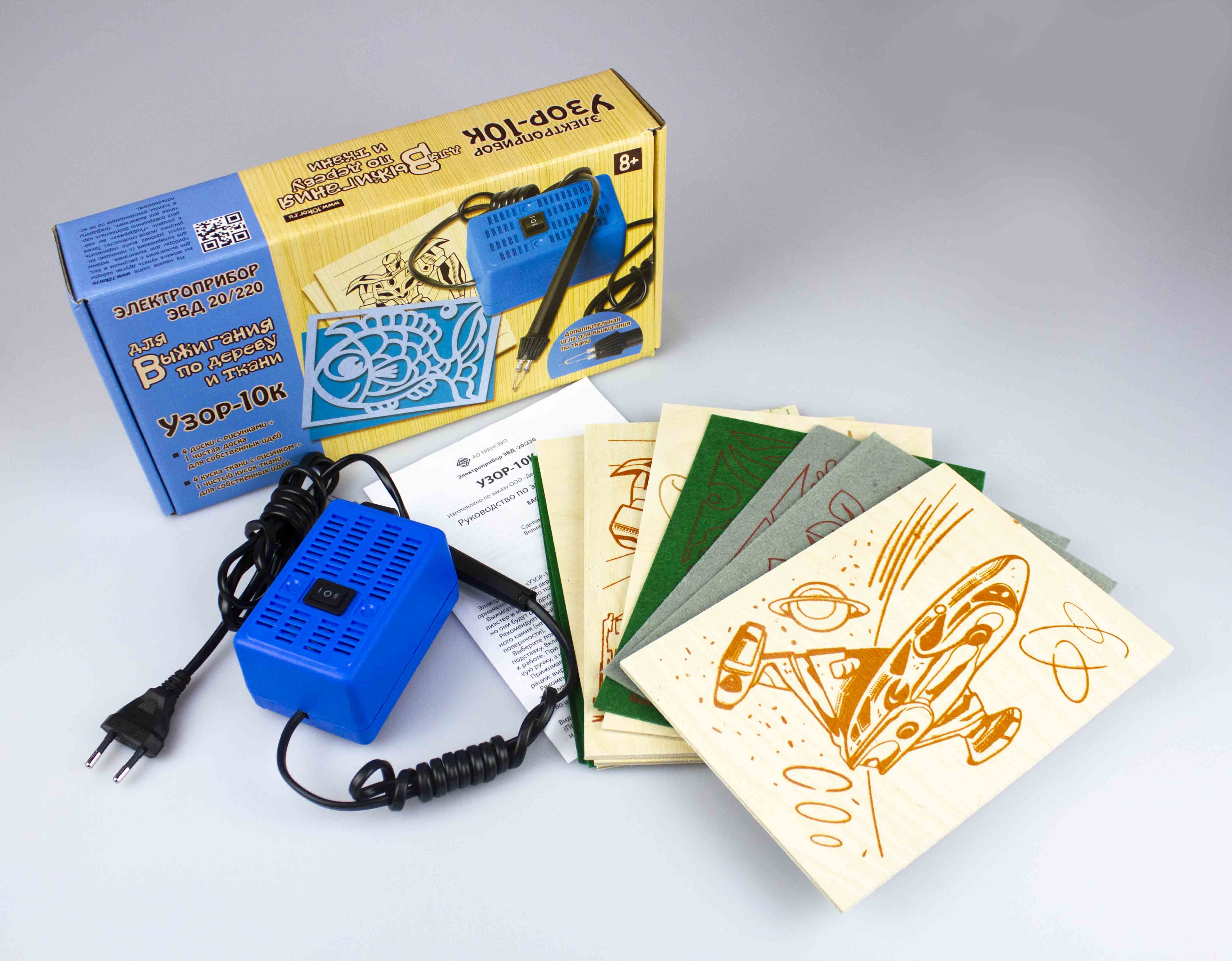 Электроприбор для выжигания по дереву и ткани - Узор-10к, (5 досок, 5 кусков ткани), 03863ДК