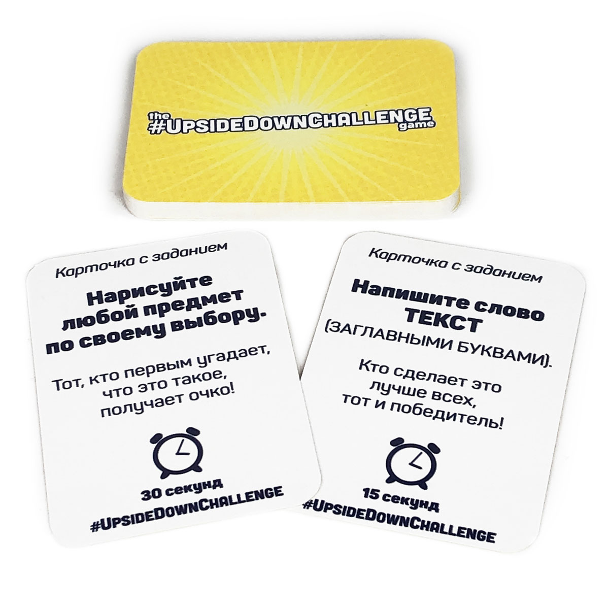 Вечер семейных игр только что стал намного веселее! Игра Upside Down Challenge (Апсайд Даун Челлендж) заставит ваших друзей и семью громко смеяться на протяжении долгого времени. Соревнуйтесь в выполнении простых заданий, вроде, написать на карточке своё имя, «дать пять», перелить воду из одной чашки в другую, в то время как ваше зрение перевернуто с ног на голову! Вы будете потрясены, насколько сложными становятся даже самые простые задачи, когда вы видите всё вокруг вверх ногами.