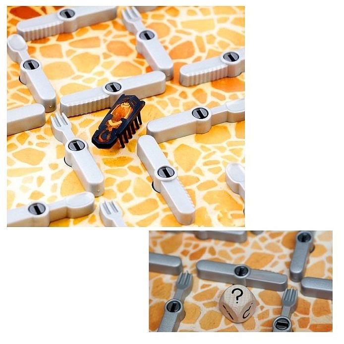 Дети будут в восторге, когда увидят забавного таракана, бегающего по лабиринту с границами в виде ложек и вилок. Но это только начало ведь игрокам предстоит загнать насекомое к себе в угол, проявляя при этом смекалку и сообразительность, а также поворачивая элементы в нужном направлении.
