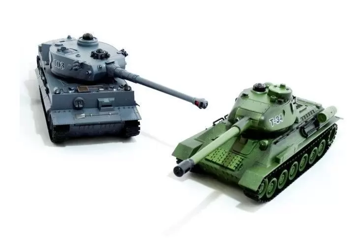 Вы готовы принять участие в танковом сражении между Т-34 и немецким «тигром»? Уникальная возможность для всех любителей реалистичных моделей военной техники! В комплекте с каждой моделью идет многоканальный пульт управления, позволяющий не только руководить передвижениями танка, но и стрелять из инфракрасной пушки! Каждая боевая единица оборудована 5 светодиодными индикаторами прицельного попадания.