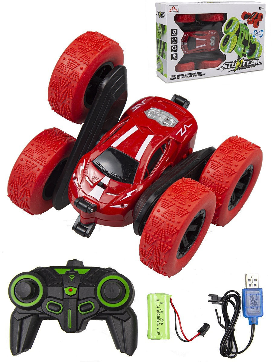 - В комплекте: машинка-перевертыш, аккумуляторная батарея, USB провод для зарядки, пульт ДУ.