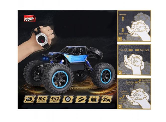 Радиоуправляемый краулер MZ YY2026A - это полноприводный радиоуправляемый внедорожник в масштабе 1/14 создан для преодоления бездорожья и контролируется как при помощи классического пульта управления, так и с помощью жестов посредством браслета, стилизованного под часы. Полноприводный автомобиль оснащен двумя электромоторами, пружинными амортизаторами и прочными мостами с дифференциалом. Панели кузова выполнены из алюминиевых пластин