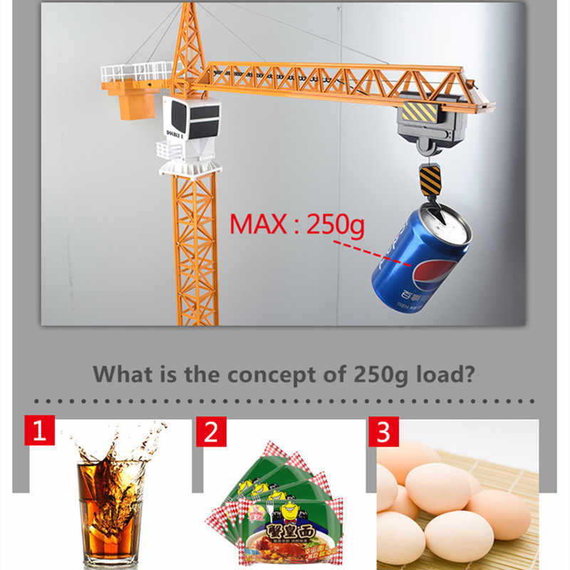 Радиоуправляемый башенный кран Double Eagle E563-003 выглядит, как реальная техника для транспортировки различных тяжелых предметов. Он может поднимать объекты, транспортировать их в различные места и поднимать их с помощью лифтового механизма. Модель крана высоко детализированная и способна имитировать звуки за счет встроенных динамиков внутри.