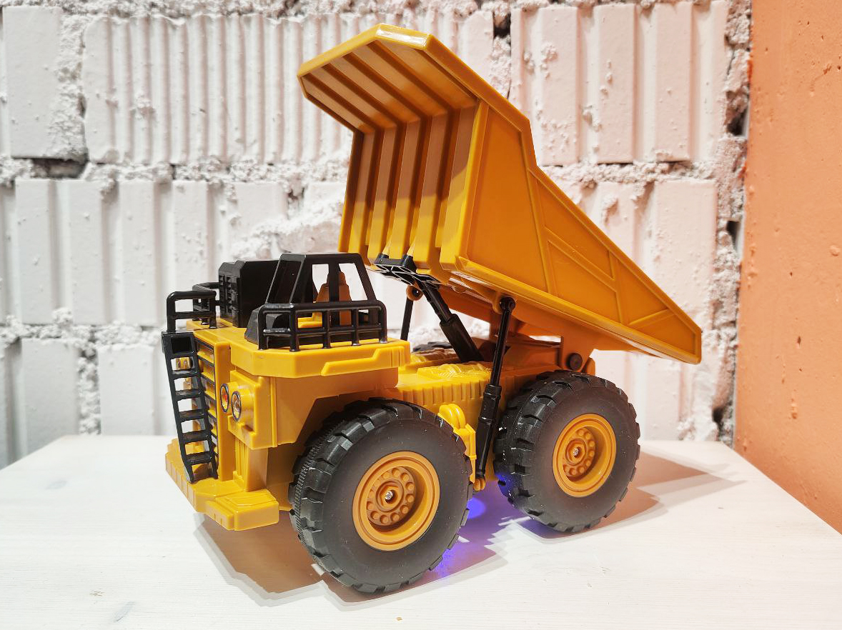 Модель является миниатюрной копией карьерного самосвала. Обладает вместительным кузовом, а также отсеками в передней части кабины, что добавляет устройству возможностей по транспортировке игрушек и мелких элементов. Машина станет отличным подарком ребенку, который любит собирать различные конструкторы, ведь самосвал способен перевозить большое количество предметов, что упростит задачу транспортировки и сделает игровой процесс намного интереснее.