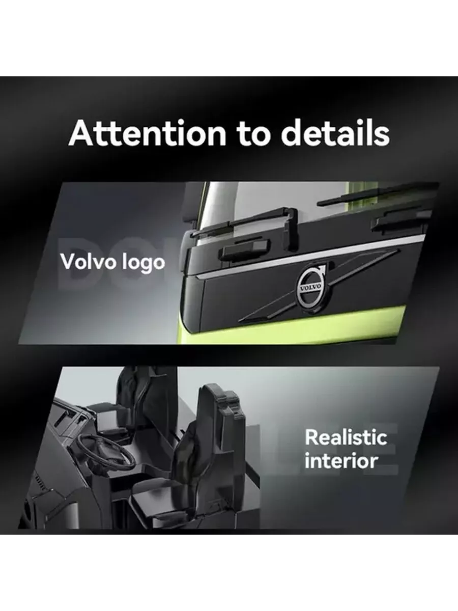 - Высокая степень детализации: Модель поражает своей реалистичностью, точно воспроизводя облик и пропорции оригинального Volvo FMX. Каждая деталь тщательно проработана, передавая всю сложность и многогранность конструкции настоящего бетоновоза.
