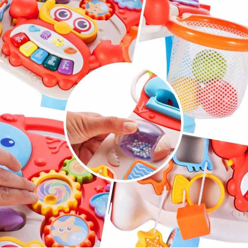 Игровая панель включает в себя много интересных и функциональных элементов:- мини-пианино в виде крабика;