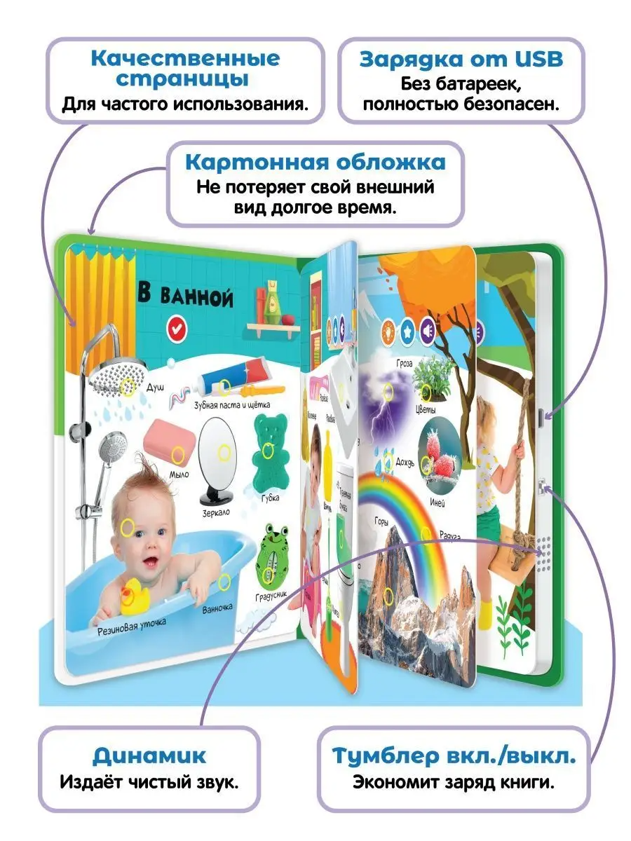 Оформление картона и плотная бумага, используемые для создания этой книжки, делают ее надежной и долговечной, идеальной для частого использования. Более того, эта книга не требует использования батареек - она заряжается от розетки, что делает ее еще более удобной в использовании.