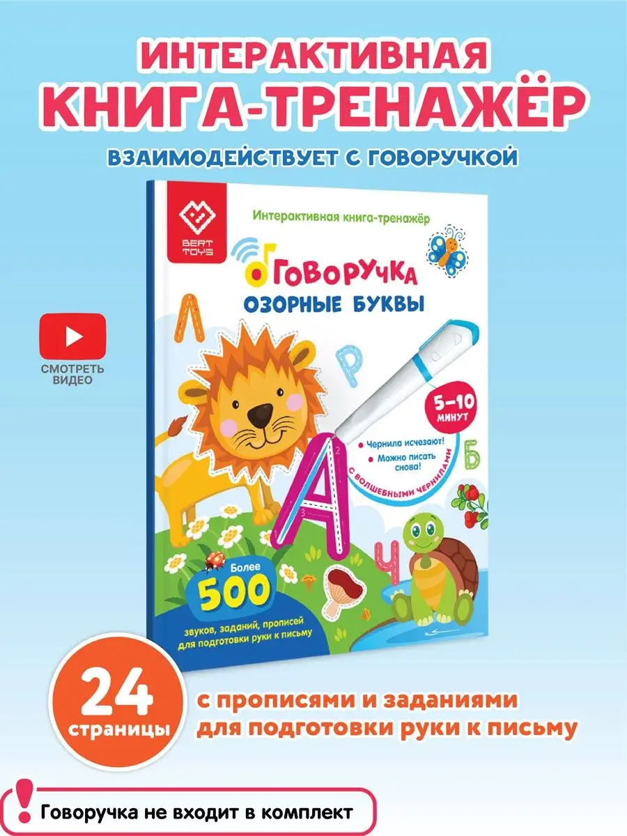 Интерактивная книга-тренажер «Озорные буквы» - это идеальный выбор для развития навыков чтения и письма у детей от 2 до 6 лет. Взаимодействуя с говоручкой, ручкой-тренажером от BertToys, каждый малыш может погрузиться в мир занимательного обучения.