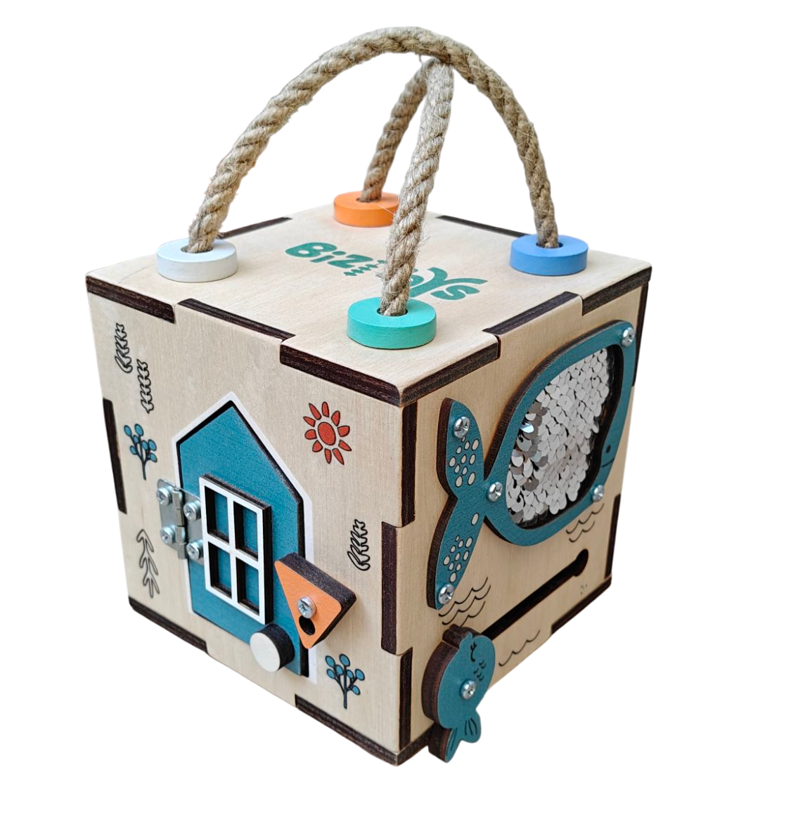 Приятные глазу цвета, небольшие размеры кубика и превосходное исполнение не оставят равнодушными никого. Данный бизибоксик станет приятным подарком для каждого ребенка.