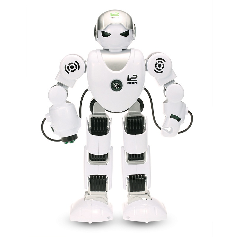 Естественно, управляется он дистанционно на расстоянии до 30 метров, а передатчик работает от 2-х батареек типа АА (в комплект не входят). Пульт дистанционного управления мощностью 2,4 ГГц, а аккумулятор, встроенный в робота на 600 мАч заряжается примерно 2-3 часа, что в итоге дает 30 минут непрерывной работы.