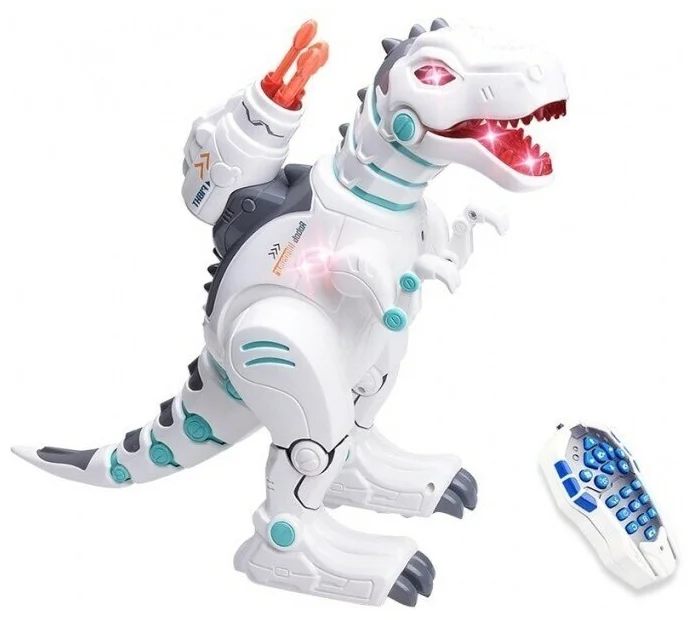 - Радиоуправляемый интерактивный динозавр – это робот, который может ходить в нескольких режимах, разворачиваться в обе стороны, стрелять стрелами, танцевать (робот двигается, стреляет, рычит под набор песен), запоминать команды, а потом их выполнять.
