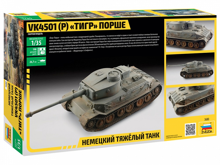 Сборная модель - Немецкий танк Тигр Порше, Звезда 3680з