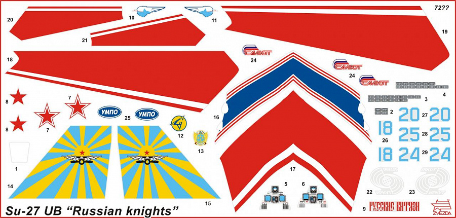 Авиационная группа высшего пилотажа Су-27УБ "Русские витязи", сборная модель, Звезда 7277з