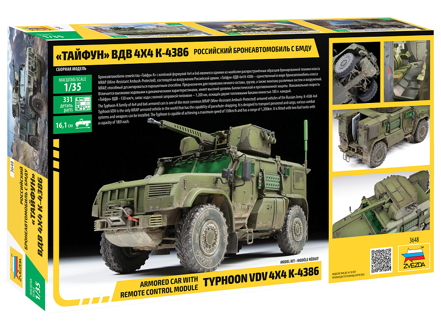 Сборная модель - Российский бронеавтомобиль Тайфун ВДВ 4*4 К-4386 с БМДУ, Zvezda 3648з