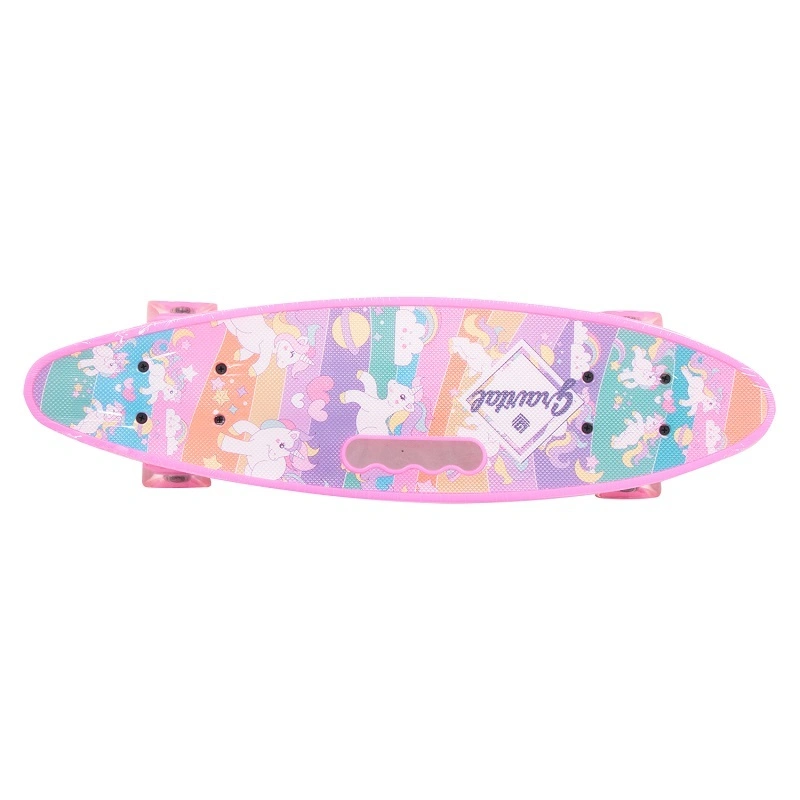 Скейтборд (пенни борд) с ручкой - Единороги, светящиеся колёса, 885/14mi