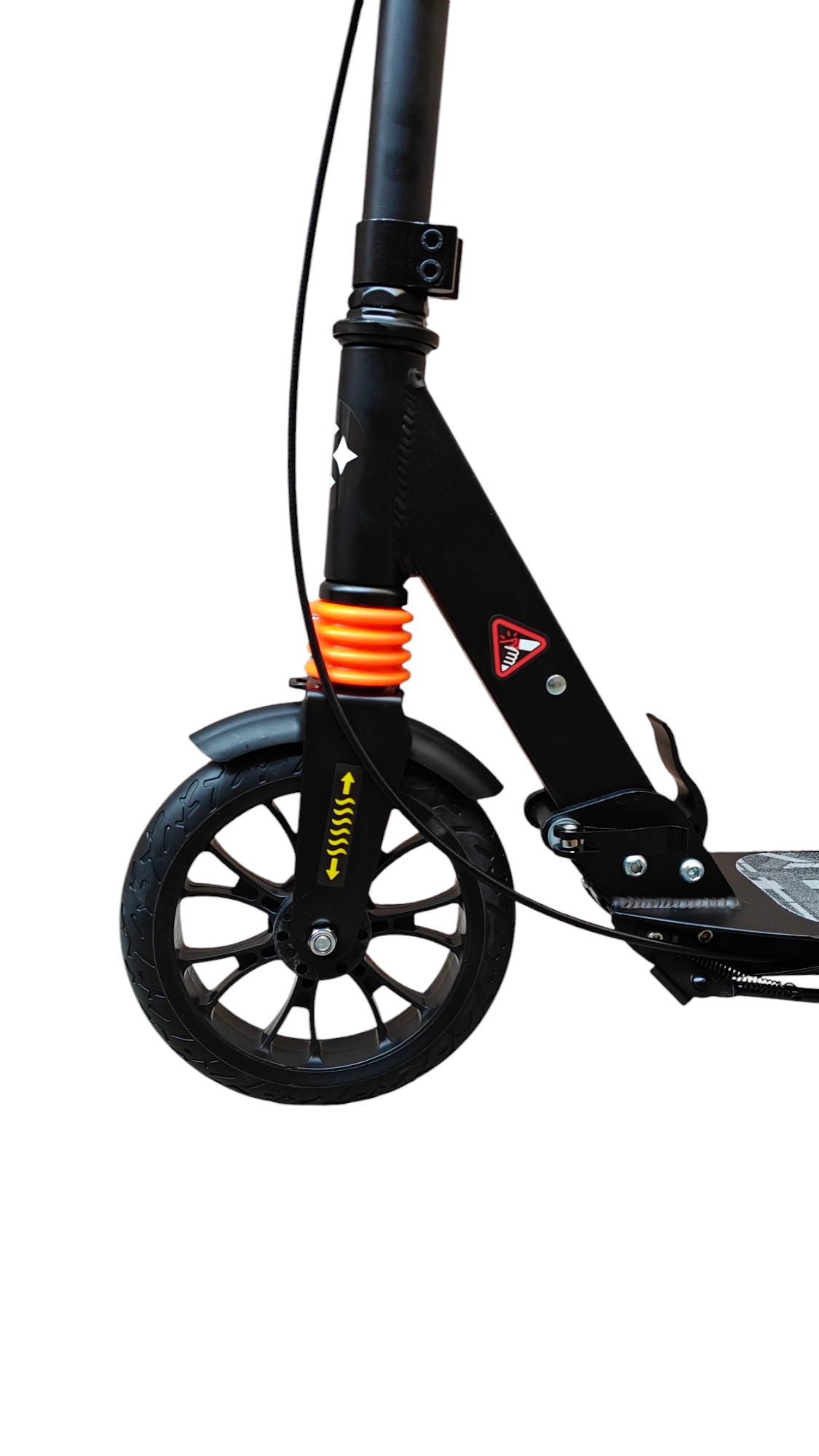 Улучшенная модель с обновлённой тормозной системой. В отличие от модели 2019 года регулировочные болты расположены не горизонтально, а вертикально. При отталкивании вы не будете задевать их ногой. Тормозной диск расположен с левой стороны. Широкий рычаг складного механизма расположен не сбоку, а по центру.